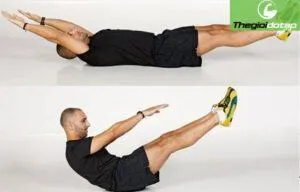 Tăng cường cơ lưng dưới và cơ mông. Nằm sấp, duỗi thẳng tay về phía trước. Đồng thời nâng tay, ngực và chân lên khỏi sàn, giữ 2-3 giây rồi hạ xuống. Thực hiện 3 hiệp, mỗi hiệp 12-15 lần.