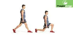 Phát triển cơ đùi trước, mông và cải thiện thăng bằng. Từ tư thế đứng, bước một chân ra sau, hạ gối xuống gần sàn, đầu gối trước thẳng hàng với gót chân. Đẩy trở lại tư thế ban đầu. Thực hiện 3 hiệp, mỗi chân 10-12 lần.